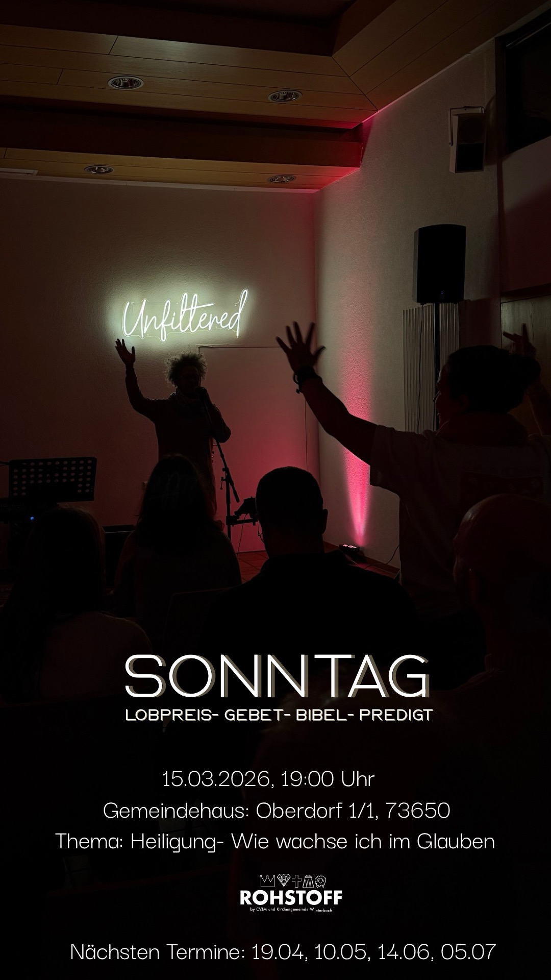 UNFILTERED-Gottesdienst im Gemeindehaus um 19 Uhr. Rückblick auf bisherige UNFILTEREDs: ...
