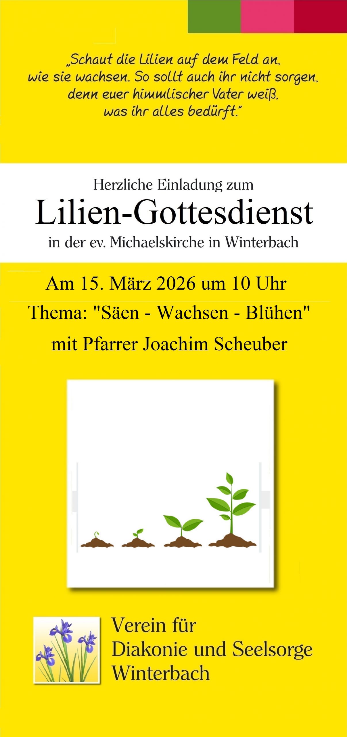 Herzliche Einladung zum Lilien-Gottesdienst Am 15. März 2026 um 10 Uhr in der Michaelskirche Thema: ...